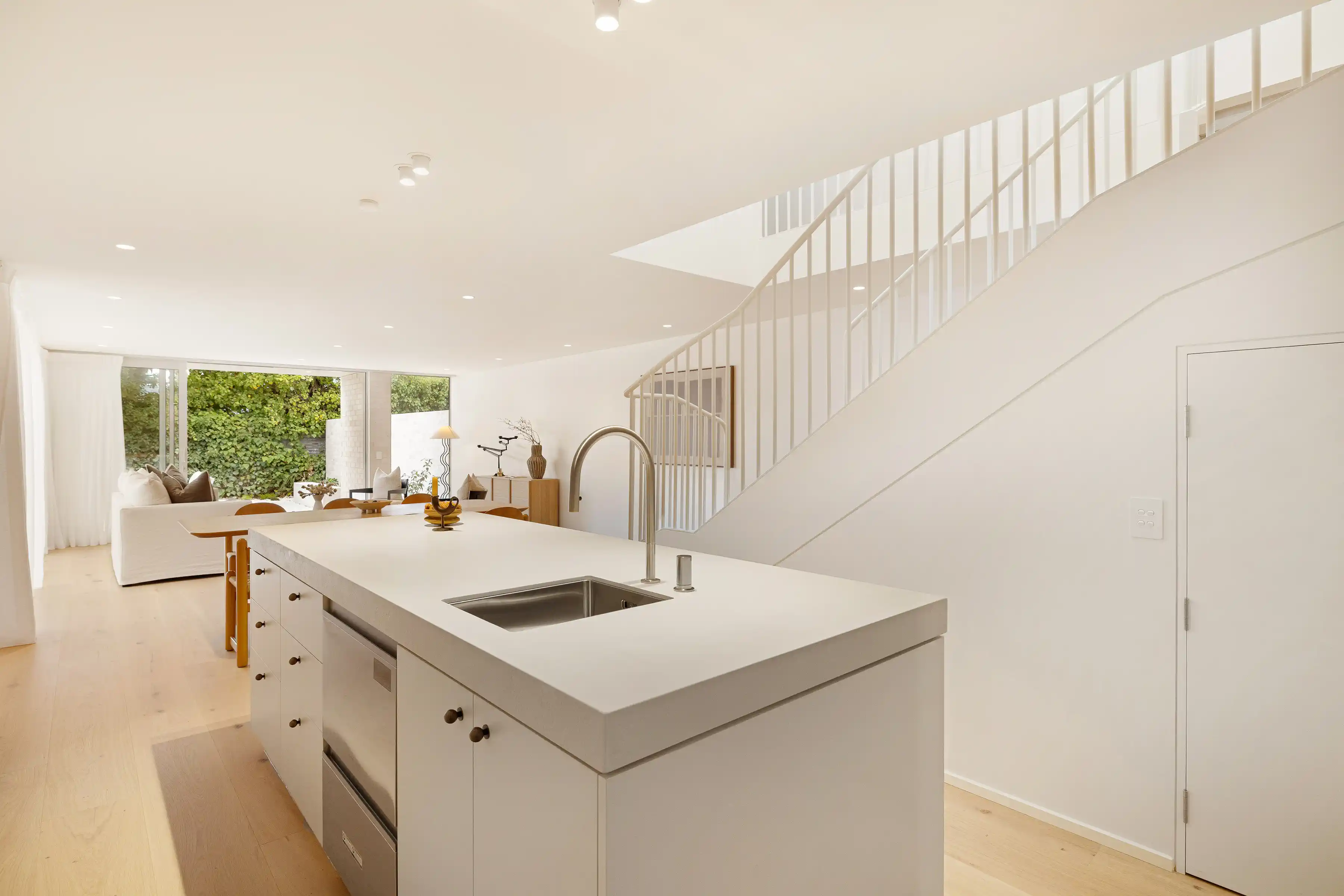 Inside, a calm and cohesive atmosphere is created through a soft, neutral palette. The kitchen sits at the heart of the home, featuring a central island, walk-in pantry, and refined cabinetry - designed for both everyday living and effortless entertaining.